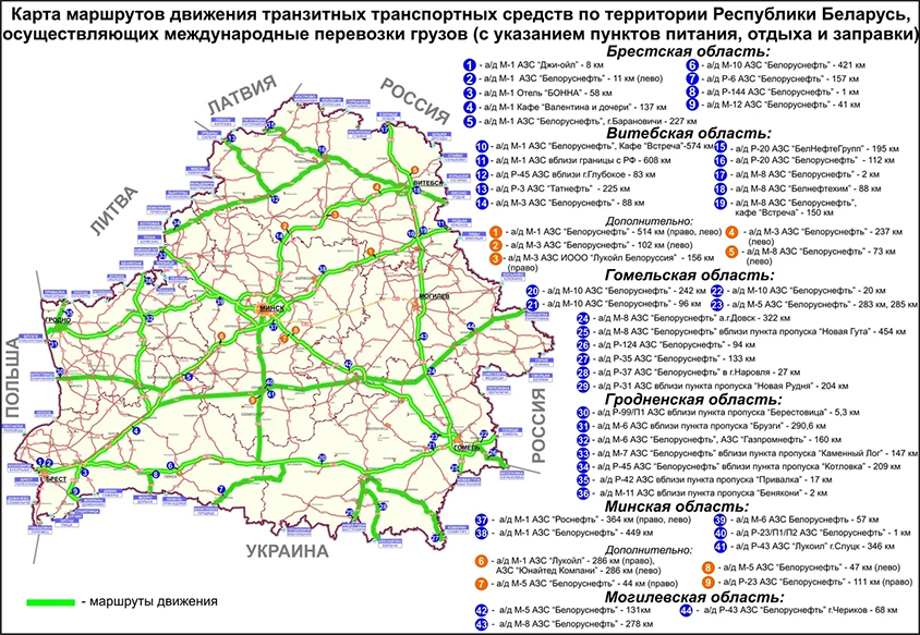 - Маршруты транзитных автомобильных грузоперевозок через Белоруссию