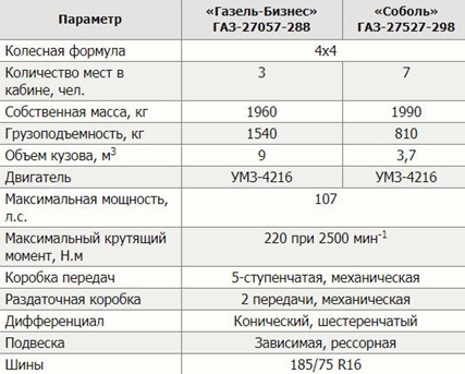 Есть и другие существенные различия между нижегородскими «братьями». Несмотря на полный привод, «Соболь» сохранил большой угол поворота передних колес, и маневрировать на нем удобно, чего не скажешь о «ГАЗели» 4х4, которая имеет диаметр разворота 15 м против 12 м у «Соболя». При этом колесная база последнего короче всего на 14 см.
