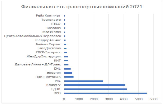 По числу филиалов лидирует DPD, далее идут СДЭК и Boxberry.
